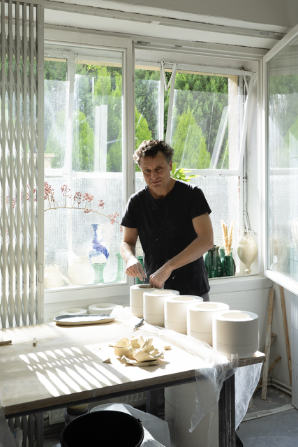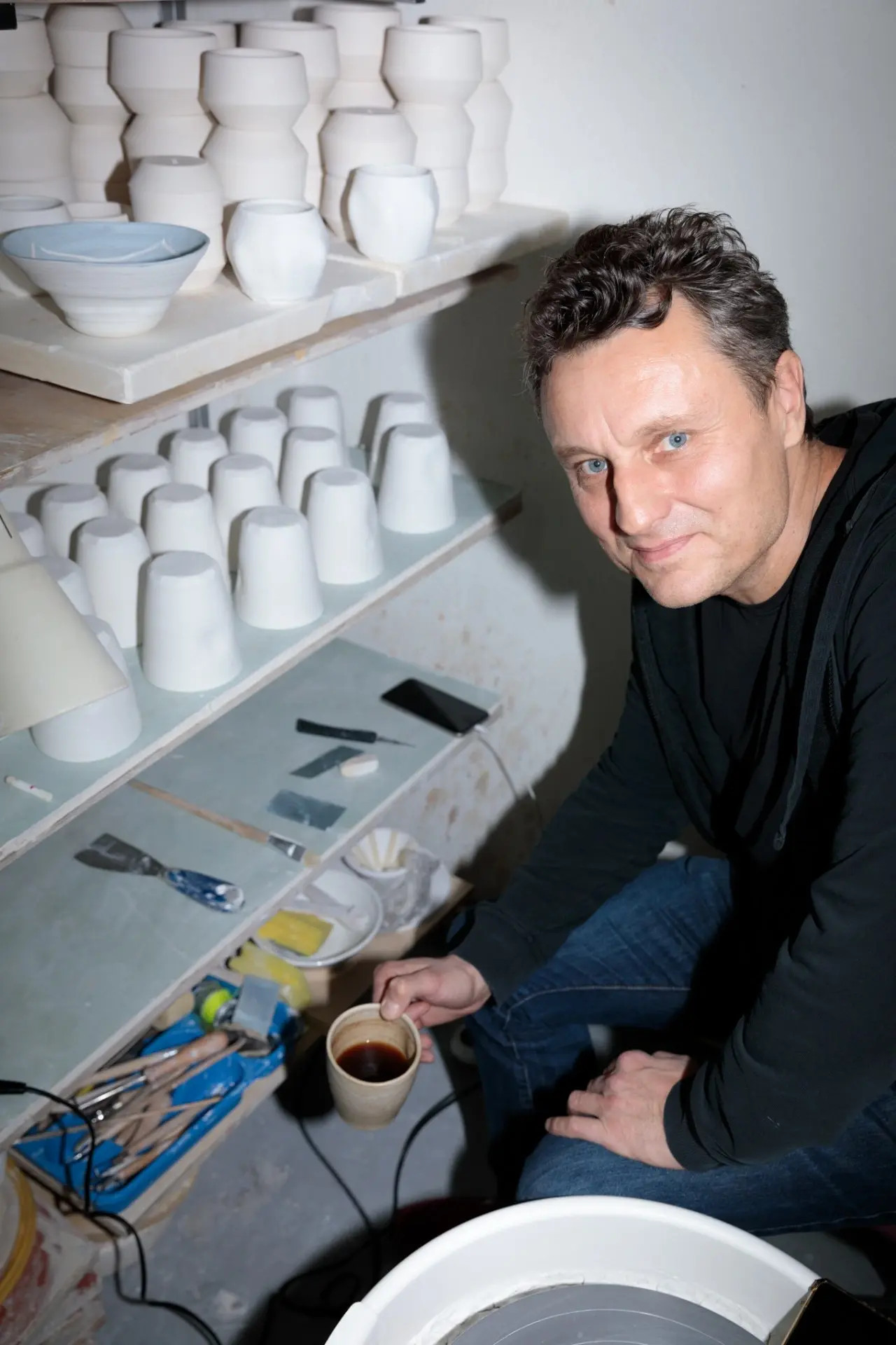 V mém ateliéru vznikají všechny objekty ručně, tradičními keramickými technikami — točením na hrnčířském kruhu a modelováním. Každý tvar je výsledkem přímého kontaktu ruky s materiálem, procesu, který spojuje řemeslnou přesnost s tvůrčí intuicí. Používané materiály — porcelán a vysoce pálená kamenina — zaručují odolnost, estetickou kvalitu i nadčasovost. Všechny glazury jsou zdravotně nezávadné a vhodné pro každodenní používání, což umožňuje spojit tradiční řemeslo s požadavky současného života.